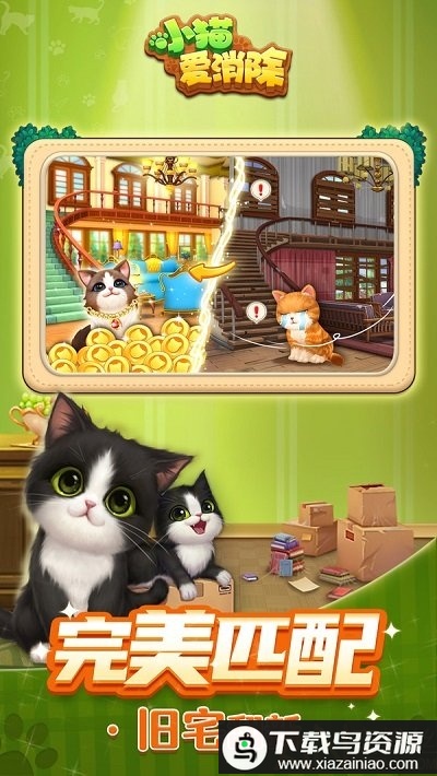游戏采用经典的消除玩法,容易上手且轻松有趣;伴随可爱猫咪角色一同挑战,可以通过收集道具来装饰你的猫咪小屋,多种难度关卡设计带来持续新鲜感。