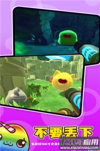 1、游戏画面清晰细腻,呈现了一个梦幻般的史莱姆星球。这些史莱姆形象呆萌,采用第一人称视角增强了代入感,互动特效也十分绚丽。