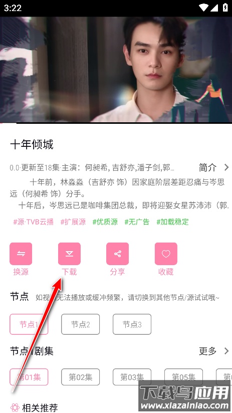 2. 进入播放页面后,点击视频下方的下载按钮。