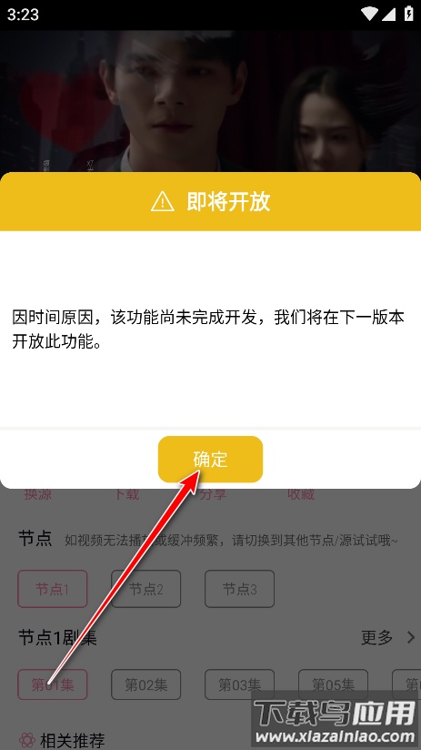 3. 随后按照应用提示点击确认即可;此时界面会显示提示:因时间原因,该功能尚未完成开发,我们将在下一版本开放此功能。