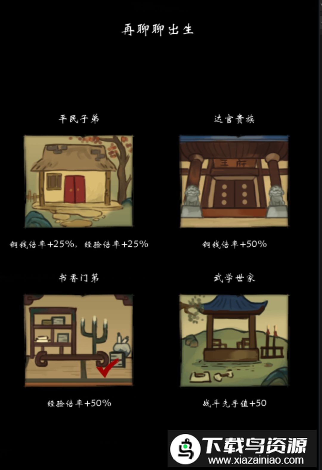 接着是出生选择:共有四种出身方向。