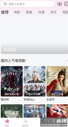 2、内置电视直播专栏,包含央视、卫视及电影直播等频道;