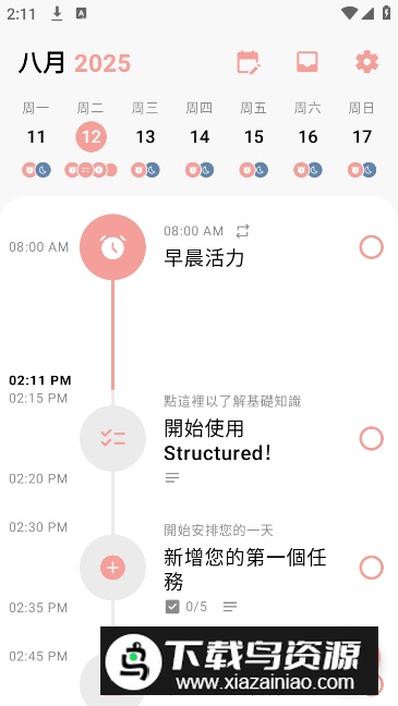 这款日程规划应用的最新版本集成了智能时间管理与任务优先级算法,它巧妙融合了四象限法则与GTD工作流,能够协助用户高效安排每日计划、拆解复杂目标,并实现工作与生活的平衡;喜欢的不妨在本站下载。