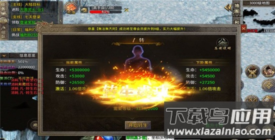 游戏设有转生系统,不仅提升属性战力,还引入了独特的压制机制:当玩家等级或转生高于对手时,十步一杀与野蛮冲撞技能可产生压制效果;系统优先判定转生等级,若相同则再比较人物等级。