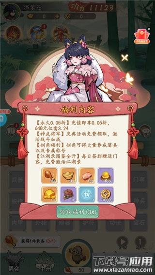 每日登录可领648限时银票,累积最高可得1000;享有免单特权,价格低于200元的礼包可免费获取;充值享受超低折扣,648元仅需3.24元;庆典活动免费领取神武将军,激活强力战斗加成;连续七日签到,绝品门客、神兵利器与专属头像框直接到手;创建角色即赠大量养成道具与专属称号;每日签到赠送门客,轻松激活完整江湖图鉴。
