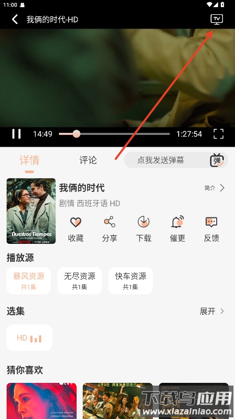 2.点击右上角TV投屏。