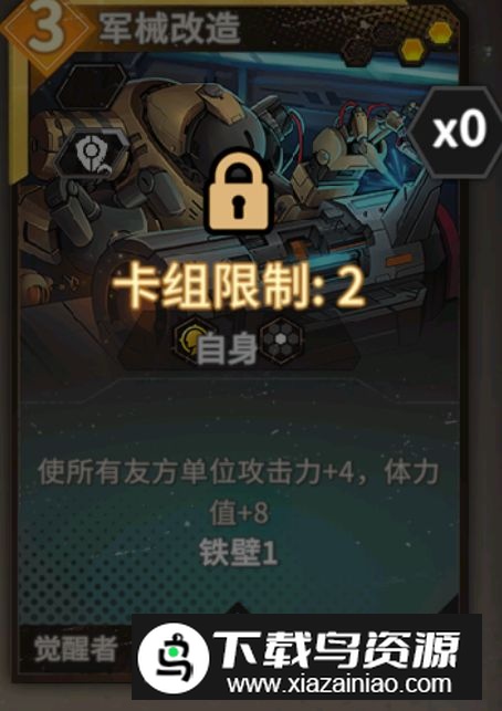 二级选择觉醒者扩容电池增加行动力上限,确保四费开局能立即召唤并唤醒钢铁捍卫者。