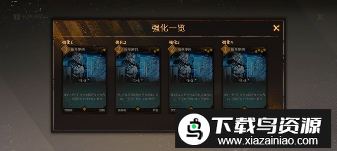 满级后消耗一点费用;实测表明同一回合使用两张指令序列,下回合攻击力将提升至本回合的四倍,因此这张牌属于绝对核心。