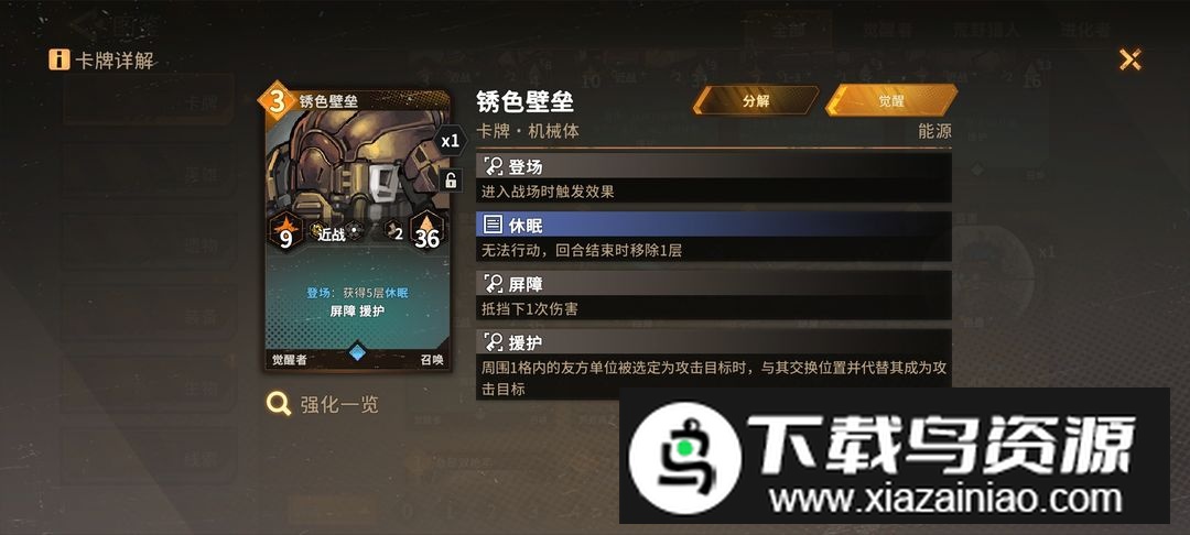 十层休眠效果能吸收大量伤害,适合作为前期肉盾,蓝色品质也容易升至二级。