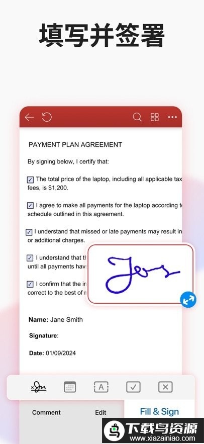 通过可填写PDF功能随时处理表单,在线签署文件;您可以直接手写签名,也能重复使用已保存的电子签名来完成修改。