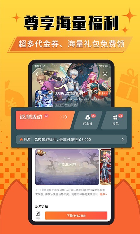 送礼包:定期更新百万量级游戏礼包,免费下载畅玩无限制;