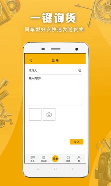 依据经营车型注册并添加相关好友,简化询件流程;稀缺配件支持多人派单,提高查找成功率。