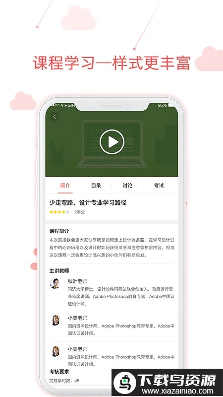 2. 便捷移动学习:即使工作繁忙,也能利用移动终端随时学习;课程内容支持下载到手机,方便利用零散时间随时充电。