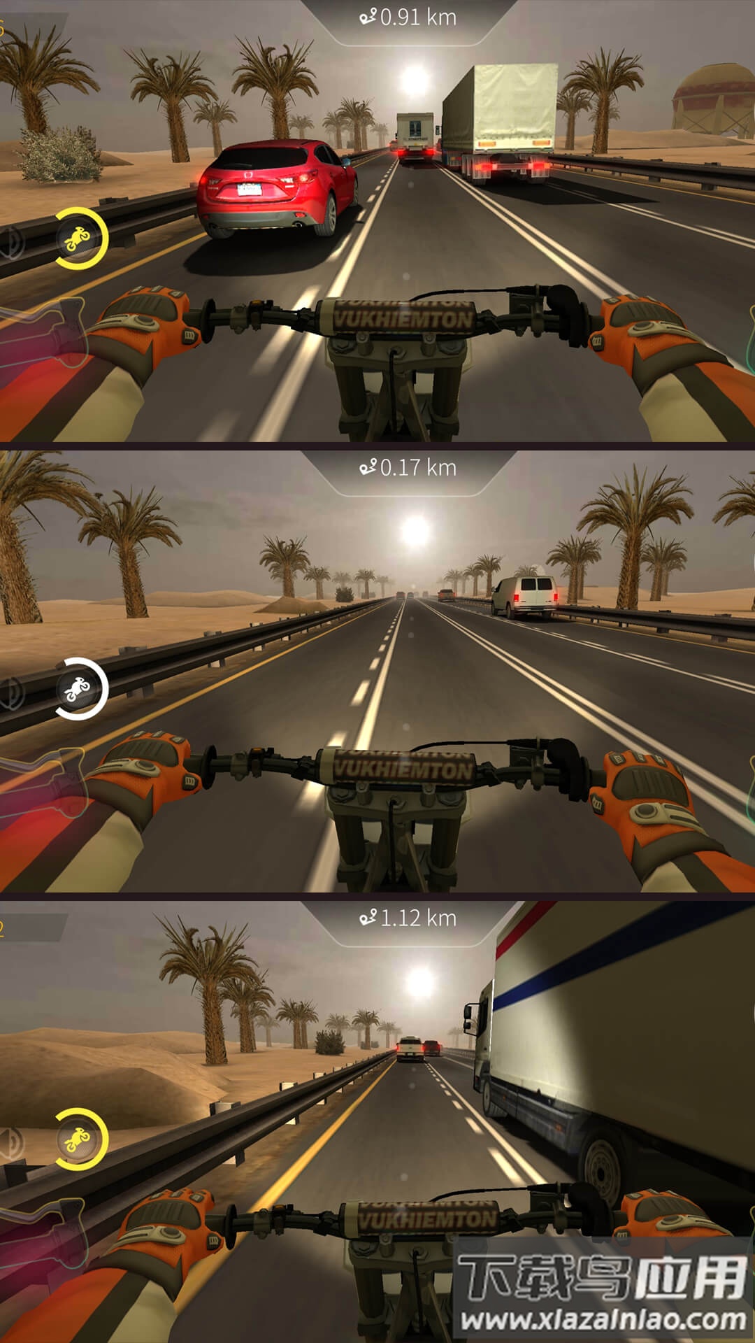 准备好发动引擎,在公路上来一场心跳加速的极速狂飙了吗?这款摩托竞速游戏将带你驶入繁忙的高速公路,在紧张刺激的追逐中,感受风从耳边呼啸而过的畅快。你需要在连绵不绝的车流中敏捷穿行,应对突如其来的变道、庞大的卡车与缓慢的公交车,每一次转向与加速都在考验你的即时反应与操控能力。和时间竞赛,与对手较量,用不断刷新的纪录来证明你的骑手实力。