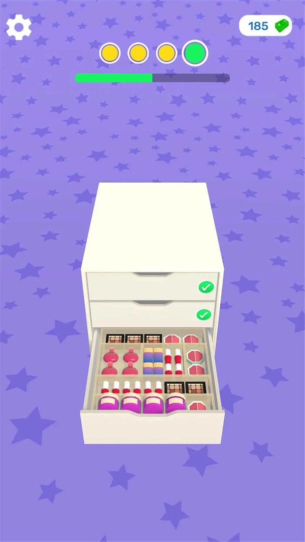 2. 每个关卡提供的化妆品柜款式都不同,必须将所有化妆品整齐放入柜中才算完成;