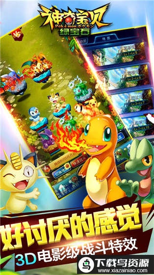 神奇宝贝绿宝石将卡牌收集、精灵养成与策略对战融为一体,操作简洁且战斗特效华丽;游戏不仅提供了激烈的公会团战玩法,还包含精灵进化、宝物争夺、装备精炼等特色系统;同时设计了大量适合碎片时间的轻松玩法,让玩家既能享受畅快战斗,也能悠闲参与萌宠养成计划;游戏采用全3D模型构建,以精美奇幻的场景与可爱唯美的角色形象呈现出一个生动的精灵世界。