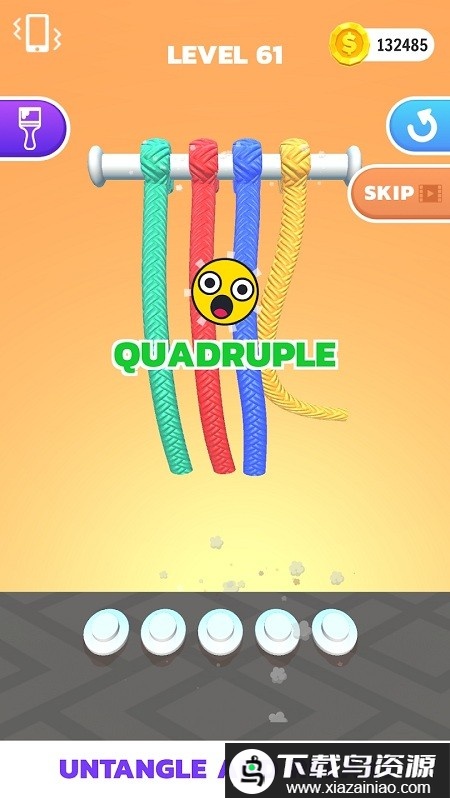 解开缠绕的彩色绳索是这款益智闯关游戏的核心玩法,游戏内设计了大量关卡,绳索的纠结程度会逐步提升,十分考验玩家的耐心与逻辑思维能力,它也是日常消磨时光的好帮手,喜欢的就在本站下载。