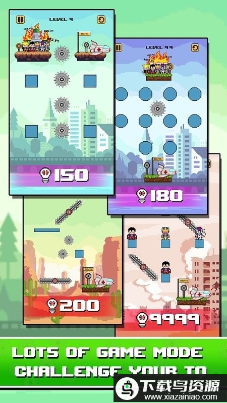 绳索像素大师是一款以像素画面呈现的益智救援游戏,玩家需要利用绳索将高处被困的人员安全送至地面,过程中必须灵活避开锋利的刀片等危险障碍。游戏设计了众多富有挑战的关卡,十分考验玩家的策略布局与即时判断能力,适合喜欢动脑的玩家体验;若你喜欢这类烧脑解谜游戏,欢迎在本站下载试玩。