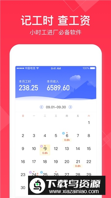 1、快速记工时:设置小时工资后,每日记录工时即可自动计算收入;