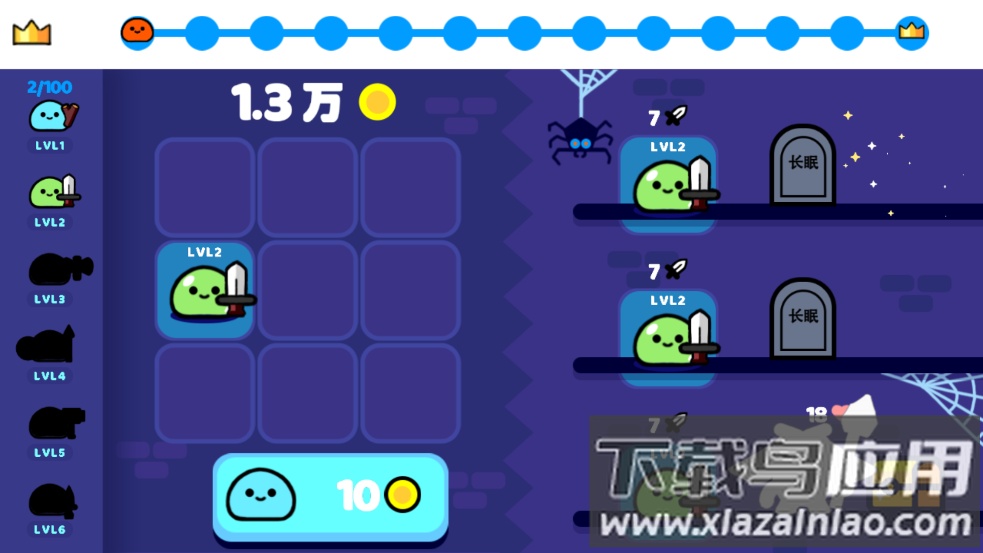 1,进入游戏后点击消耗10个金币,召唤出最初的史莱姆