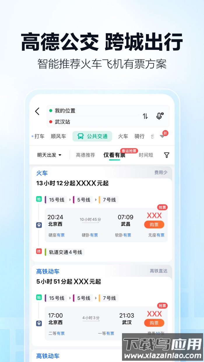 -公交服务支持跨城规划,自动推荐可行的火车与飞机票务方案