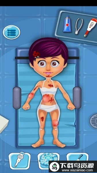 2. 体验丰富的医生模拟小游戏,包括排出注射器气泡、配置点滴、处理烧伤、包扎绷带、清除耳垢、制作药片、测量血压与脉搏等;