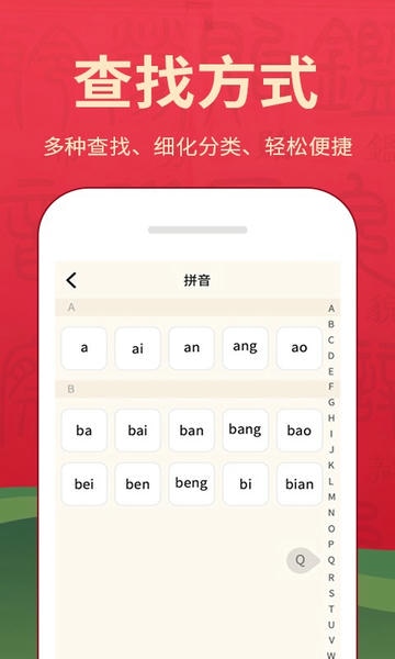 2、支持中文、拼音、部首、笔画等多种查询方式,可查单字也可查词组;
