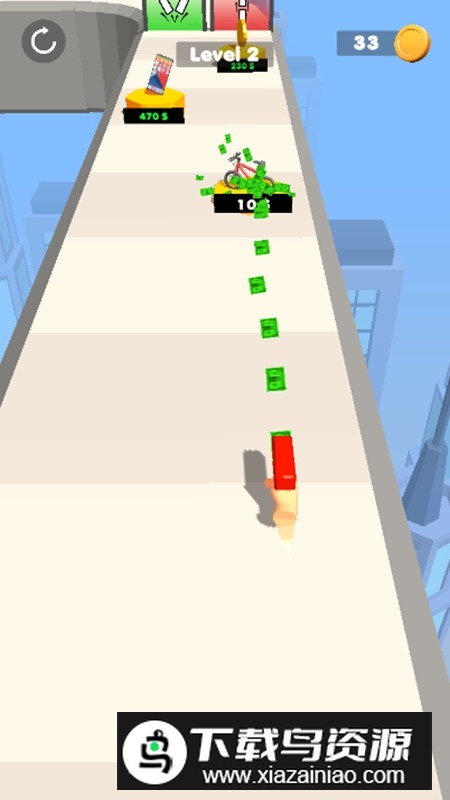 1. 通过强化武器来应对跑酷中的射击陷阱,持续击倒对手并收集金币,让自己不断成长;