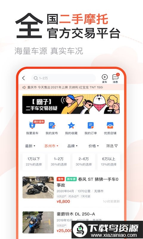 这款应用专门服务摩托车主,打造了一个集车辆交易与社区互动于一体的综合平台。它不仅整合了市场上主流品牌的车型信息,还提供了专业的交流空间,让每位骑手都能分享自己的骑行故事与实用经验;平台致力于通过全面而优质的服务,帮助用户解决各类用车难题,喜欢的就在本站下载。