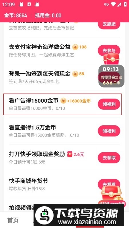 快手极速版如何看广告赚金币