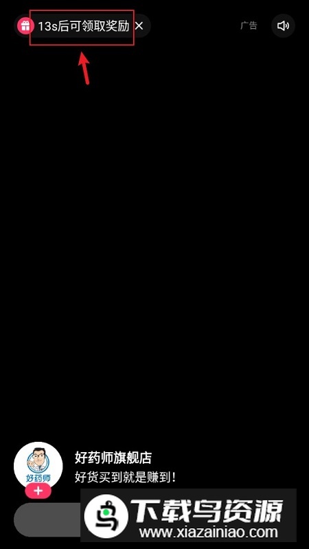 3、广告页面弹出后,等待左上角倒计时结束,系统将提示奖励已发放;