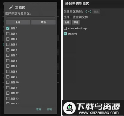 此处仅需选择扇区0;若需全盘复制,则勾选所有扇区;然后将目标卡放在手机NFC区域,点击“好的”。