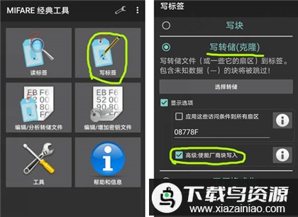 此外,也可通过“写标签”功能,将原卡的全部数据或指定扇区数据复制到目标卡中。
