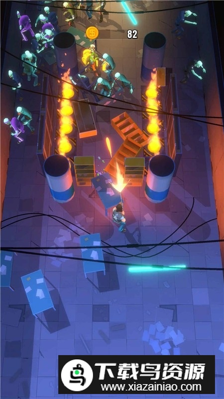 玩法类似弹射闯关,你将扮演幸存者,用手枪或手雷对抗成群僵尸,子弹可借助墙壁与道具进行反弹。