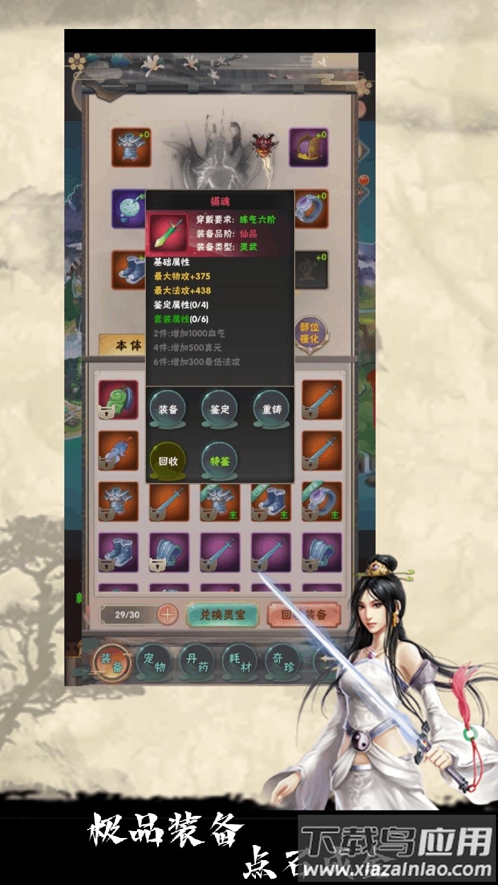 一款以放置为核心的修仙手游,让你领略修真之路的真谛。无论是自动战斗清除妖魔,还是专注养成强化自身,或是亲手炼制丹药神兵,游历未知秘境夺取珍稀异宝,一切皆由你自主决定,在广阔仙界书写属于你的传奇。