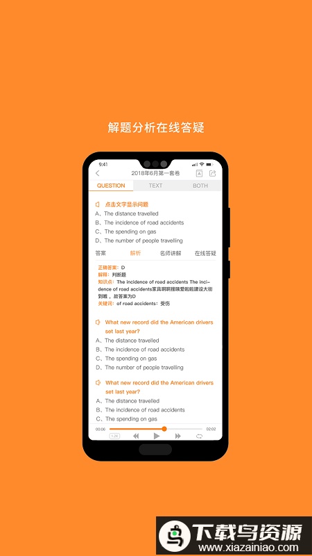 每个部分均配备题目选项、音频、听力原文以及详细的权威解析,真实模拟考场环境。