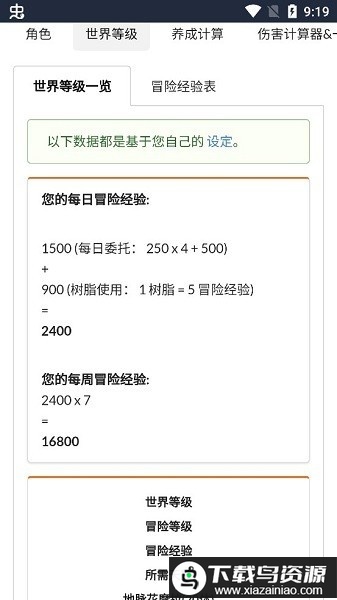 3、世界等级及养成资源计算等结果均依据个人设置显示,请提前在设置页面调整配置;