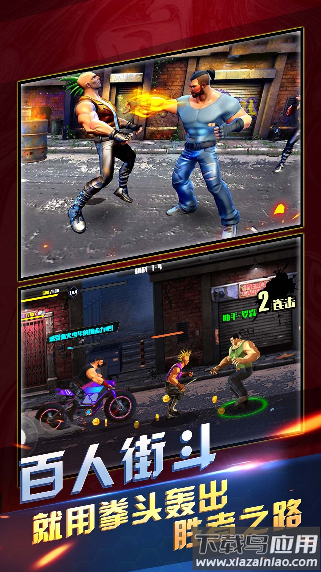 拳霸街头带来经典街机格斗体验,玩家将踏入热血竞技场,选择特色角色展开激烈对决。每一次出招都充满力量感,畅快的打击体验能让你释放压力,在连续对决中完成各项挑战任务,感受指尖沸腾的战斗激情。