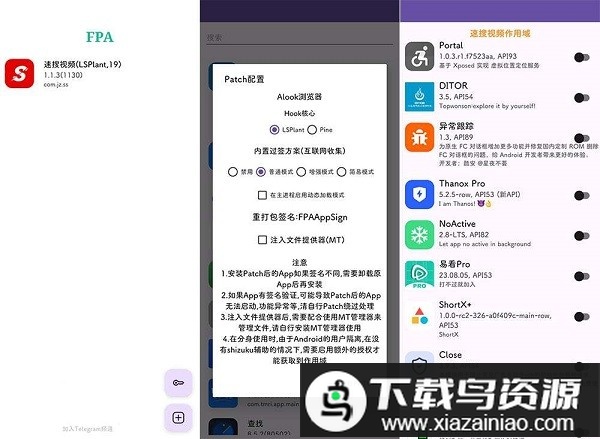 FPA模块加载器是一款无需获取手机root权限的框架应用,借助该工具,用户可以便捷地配置并启用各类xposed模块,整个过程操作直观,无需复杂步骤。这款应用完全免费开放使用,大家可以放心获取并体验,其设计具备很高的灵活度,喜欢的就在本站下载。