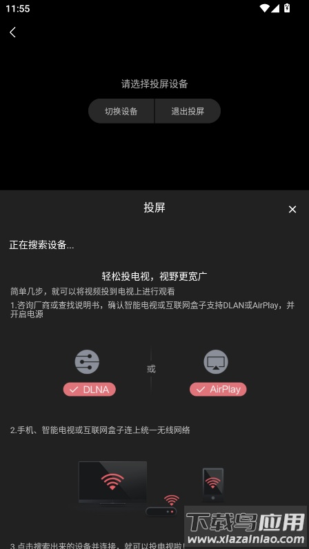 3.确保手机与电视连接同一WiFi,在搜索到的设备列表中选择对应电视名称,即可开始投屏。