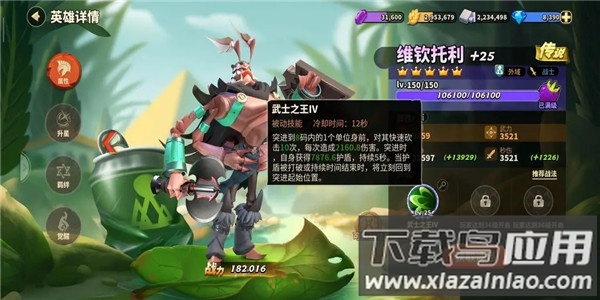四星英雄中强度较高,技能仅能释放一次,需把握敌方密集时机,可造成可观范围伤害;前期能瞬间清除大量建筑并秒杀英雄,但中期作用逐渐减弱。