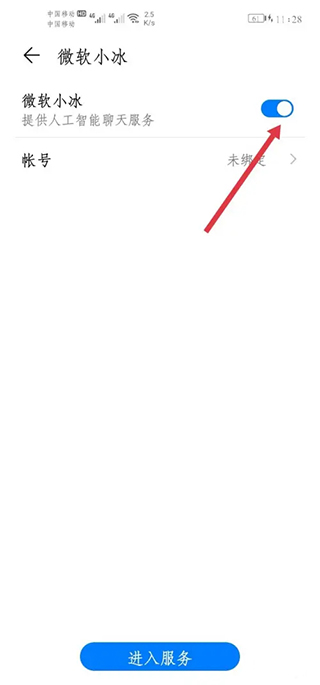 5、点击进入微软小冰,选择关闭该服务功能,即可完成虚拟男友的关闭操作。