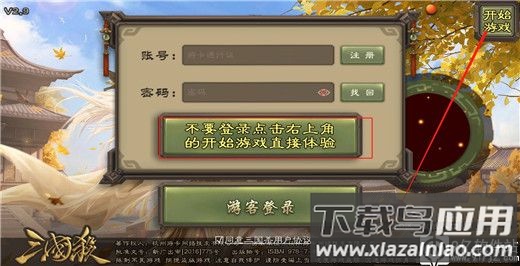 1. 启动游戏后,点击右上角开始游戏即可直接进入,无需登录;