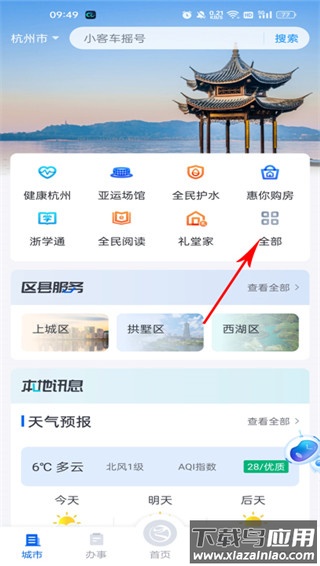 2. 进入软件之后,在城市页面中找到全部点击进入线上一站办;