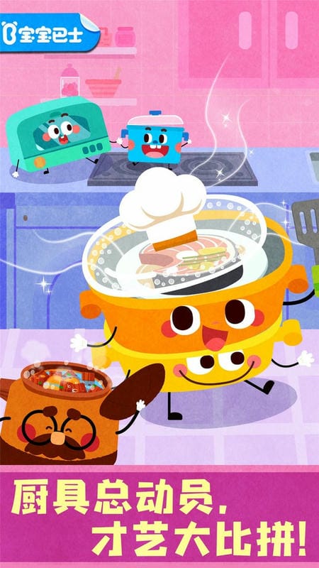 在宝宝神奇厨房的世界里,所有厨具都变成了身怀绝技的厨师;它们决定举办一场食神争霸赛来一较高下;快帮助这些厨具完成比赛任务吧;看看谁能最终赢得食神的称号;这场精彩的厨艺比拼等你来见证!
