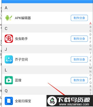 2、从列表中选择目标程序,点击制作分身按钮。
