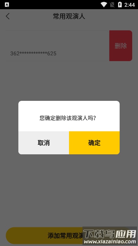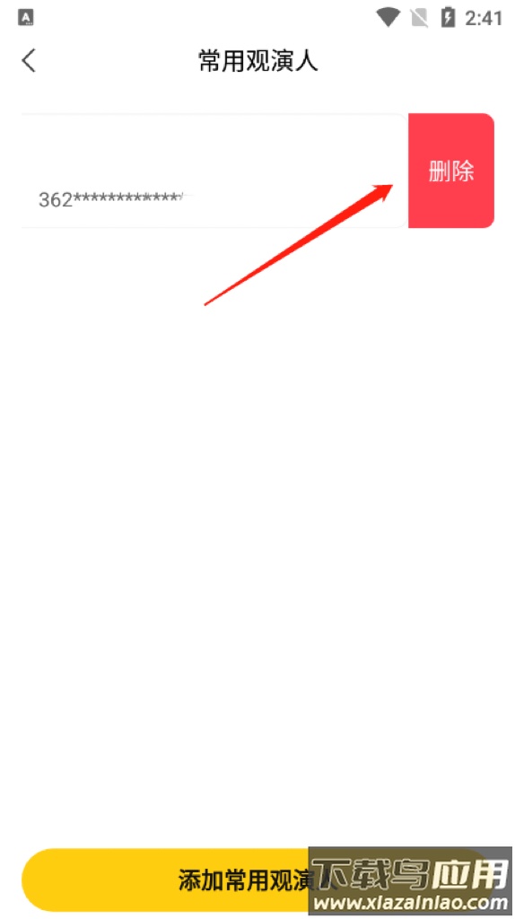 2、在观演人信息栏向左滑动,点击删除按钮;