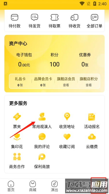 1、打开app后,点击底部【我的】,进入【常用观演人】页面;