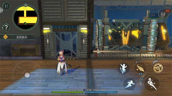 3、进入关卡后,左侧虚拟摇杆负责控制角色移动,右侧则集中了攻击、闪避、跳跃以及各类技能按键。