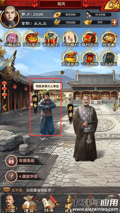5、任务挑战:涵盖多种类型的任务系统,充实官场生涯;